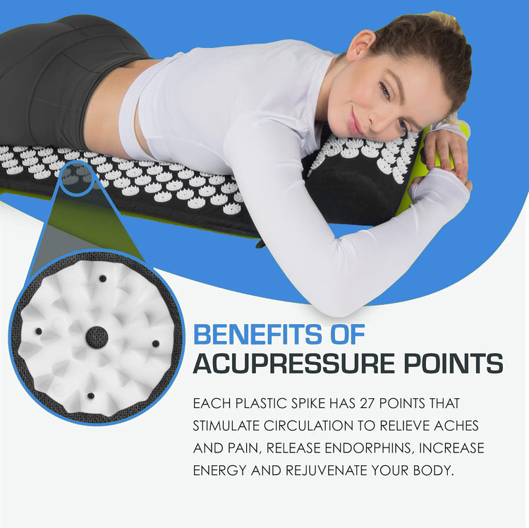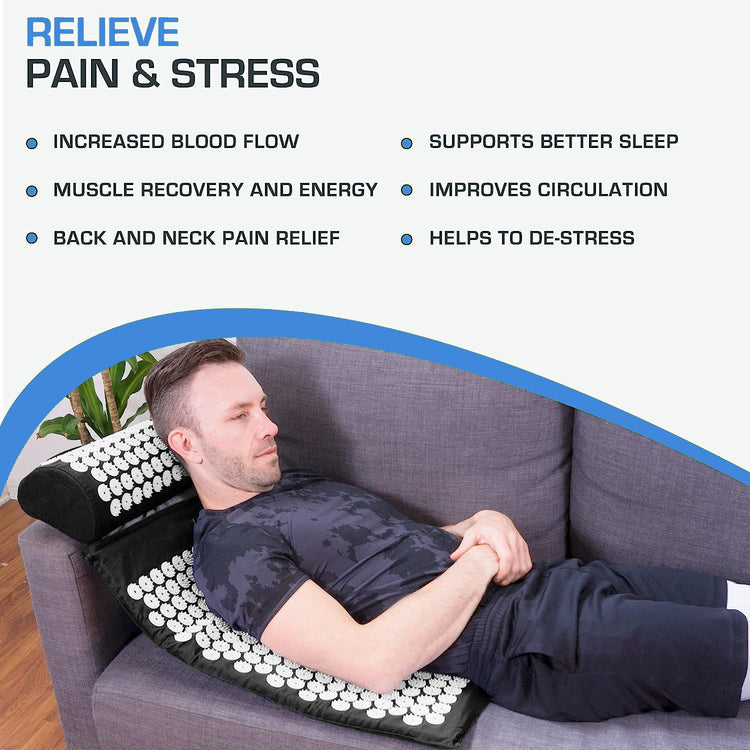 The mat's unique design also enables it to be used for neck pain relief, reducing tension headaches, migraines, and improving sleep quality.